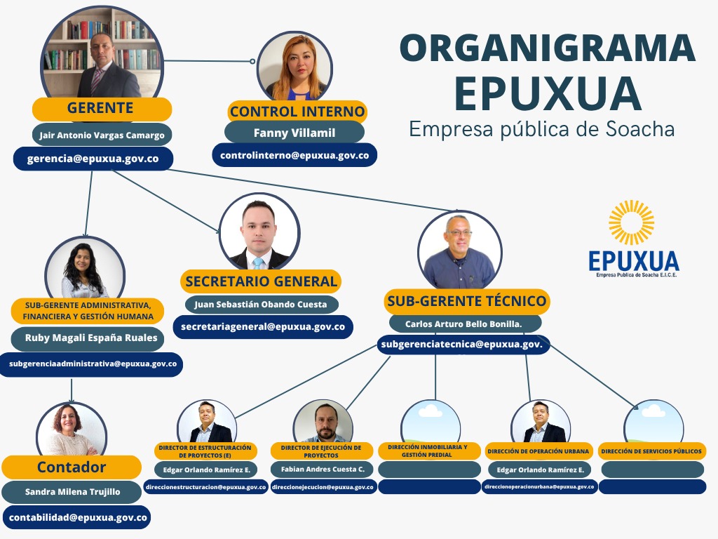 La estructura orgánica establece el orden de la Empresa Pública del Municipio de Soacha EPUXUA E.I.C.E., identificando y clasificando las actividades de la empresa, agrupando en subgerencias y direcciones, asignando responsables para la toma de decisiones y seguimiento.